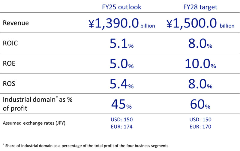 - Capital allocation is to be optimized using ROIC as a management metric, with an FY2028 ROIC target of 8% or more.
