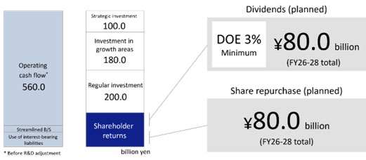 Cash created through this transformation of the earnings base will be actively deployed, under disciplined capital allocation, to projects that maximize long-term value creation. In addition to strategic investments in things such as mergers and acquisitions, Epson will invest a total of ¥280 billion over the three-year period in growth domains, including in the Precision Innovation segment as the primary growth engine and the Industrial & Robotics segment, which will be a key growth driver for the next phase.