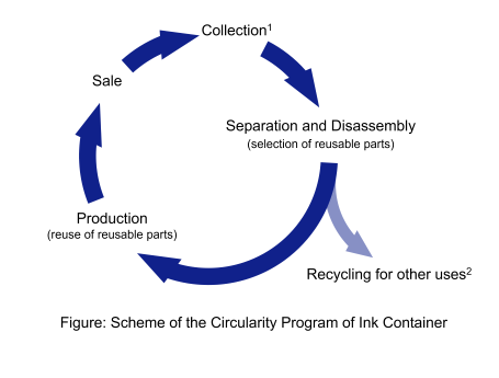 | Consumables Reuse Program Used consumables are collected and disassembled so that certain parts can be reused in the manufacture of new consumables. |