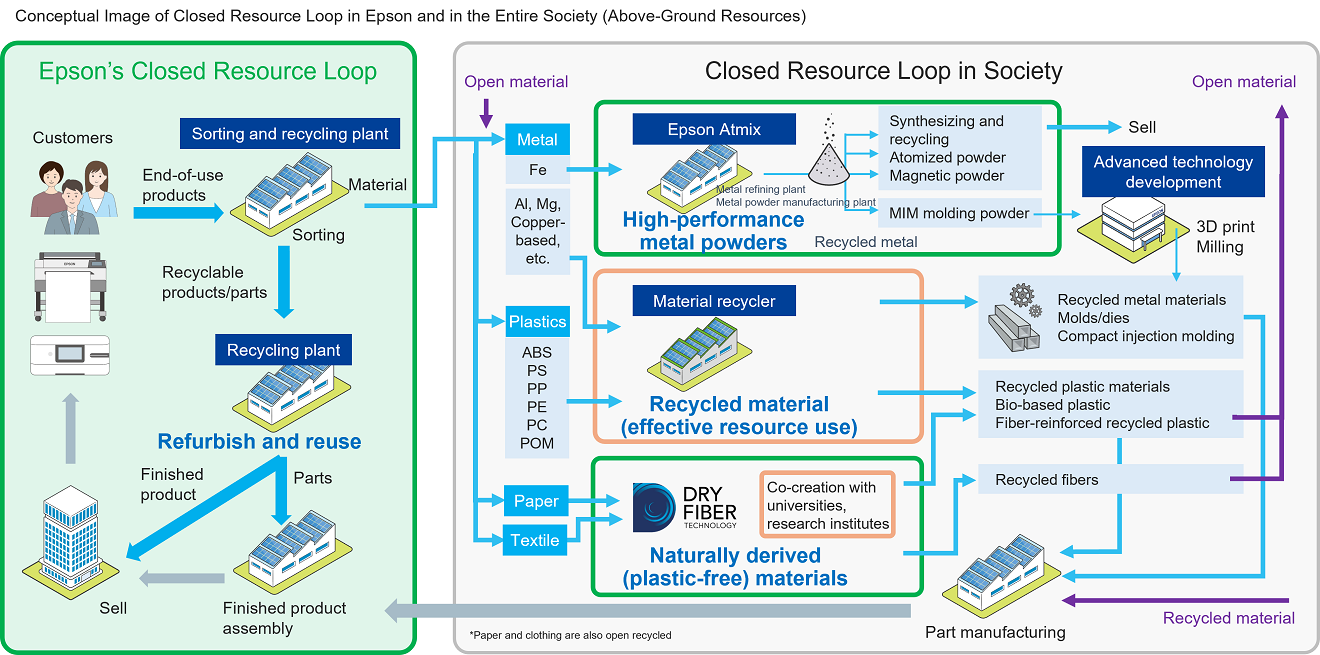 Epson will utilize previously mined underground resources as existing above-ground resources to reduce consumption of new underground resources and become underground resource free by 2050.
