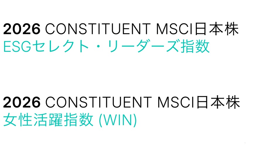 また、年金積立金管理運用独立行政法人(GPIF)が日本株を対象としたESG投資先として選定している全ての指数の構成銘柄に選定されています。(2025年12月)