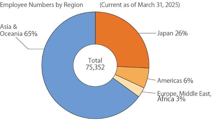 Currently, 40% of board members at overseas subsidiaries are non-Japanese, 66% of CEO positions are held by non-Japanese leaders, and 90% of managerial roles are filled by locally hired personnel.