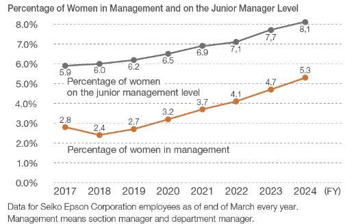 Since its founding, Epson has been guided by a spirit of creativity and challenge. We attract talent from around the world with diverse backgrounds and perspectives. Our people take ownership of their roles and projects, actively contributing to the creation of value. We believe that embracing diversity enhances our organizational creativity and serves as a driving force for the sustainable growth of our corporate value.
