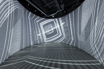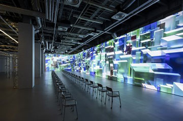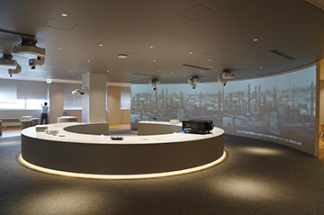 同事業の歴史やコア技術の展示スペースと、さまざまな投影環境の構築に対応する、最新のプロジェクション技術で彩られたラボスペースから構成されています。