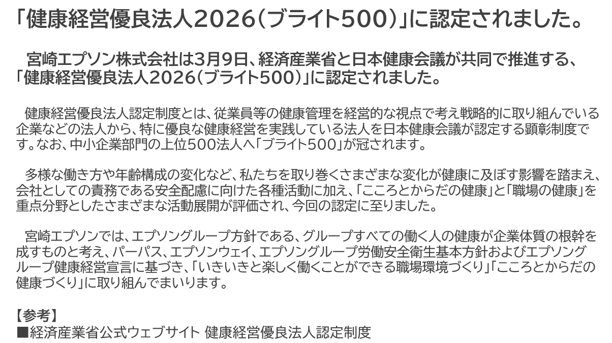 宮崎エプソン健康経営宣言
