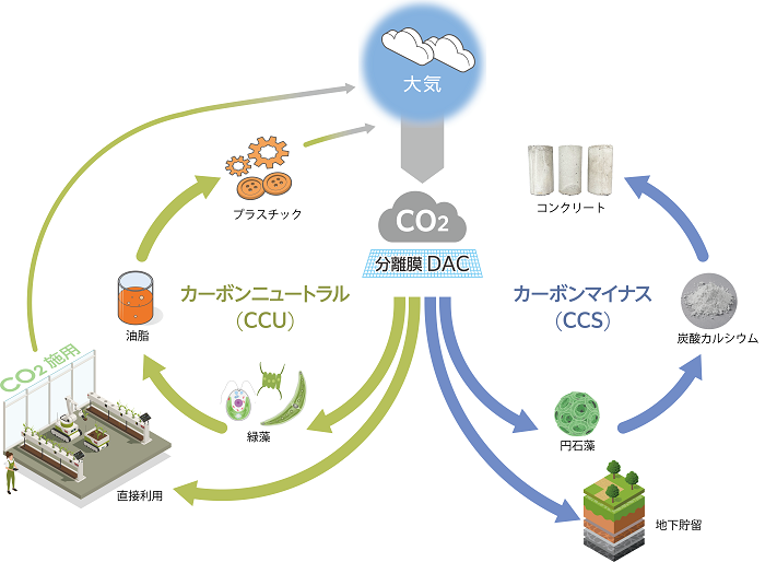 *3 CCU (Carbon dioxide Capture and Utilization):分離・回収したCO2を、農業などに直接利用、または燃料などに変換して活用するプロセス
