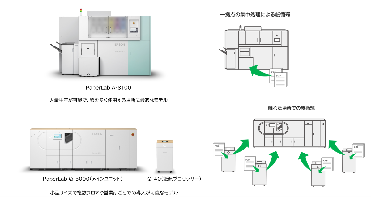 2025年3月に提供開始したPaperLab Q-5000は、機体を小型化したことで、自治体や企業などがより幅広い場面で利用可能なモデルです。紙源プロセッサーQ-40と組み合わせることで、機密性を保ちながら古紙の回収・再生が可能となり、企業グループ、地域内での紙資源の循環を促進します。