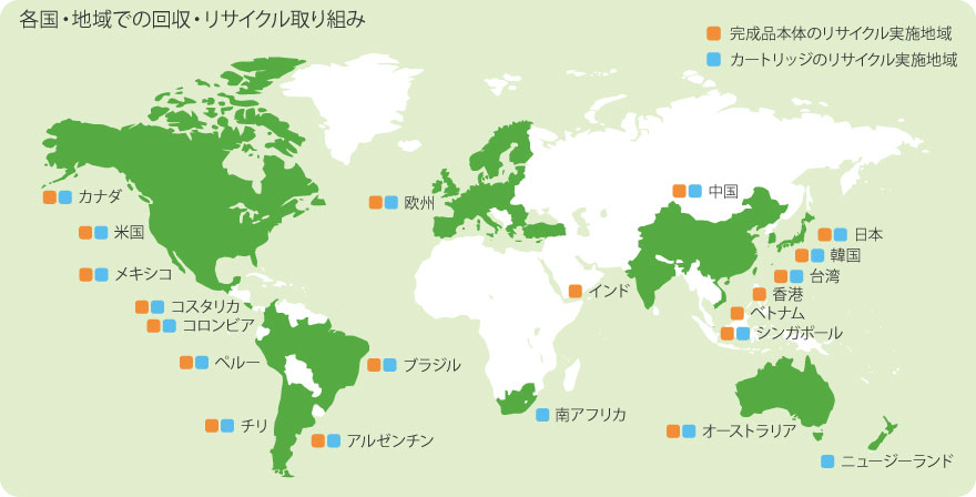 一度使用した資源をできるだけ長く活用するため、エプソンは世界各国・地域で製品の修理・保守サービスの提供や回収・リサイクル、リファービッシュの取り組みを推進し、製品本体や消耗品に使われた資源の循環利用を進めています。自社における新規資源の使用を抑制するとともに、お客様や業界、地域との連携を通じて、社会全体でのリサイクル資源の創出に取り組み、資源循環の輪を広げていきます。
