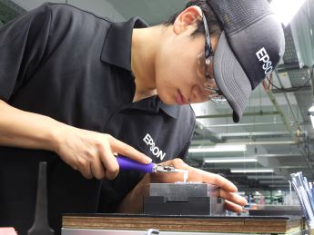 ものづくり塾は、エプソンが創出する「お客様価値」をこれまで以上に高めるために、基本的な技術・技能の継承に加え、ものづくりの具体的な仕事のステップを実践により体感することで、幅広く多面的に業務を遂行できるような人材の育成にも取り組んでいます。具体的には、製品を構成するさまざまなパーツを自らの技術で作り上げるための部品加工技術(成形・プレス)の基礎や、製造ラインの高効率化を目指すために必要な技術(省人化・自動化など)を体得させる教育を行っています。