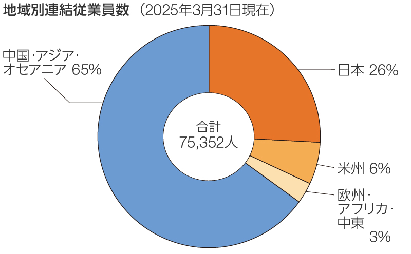 これらの活動の結果、現在、海外の現地法人のうち、米国地域統括会社においては現地人材がCEOを務め、北・中・南米の傘下現地法人の経営管理や当該地域の事業オペレーションについて全面的な責任を負っています。また、東南アジアの地域統括会社についても現地人材が代表者に就任し、地域の販売オペレーションを担っています。欧州では、地域統括会社の傘下法人は全て現地人材が責任者を務めており、世界各地のいくつかの販売法人、製造法人の責任者にも現地人材の登用が進んでいます。現在、海外現地法人の取締役に占める外国人の割合は40%、CEOポジションに占める外国人の割合は66%、また、管理職において現地採用者が占める割合は90%となっています。