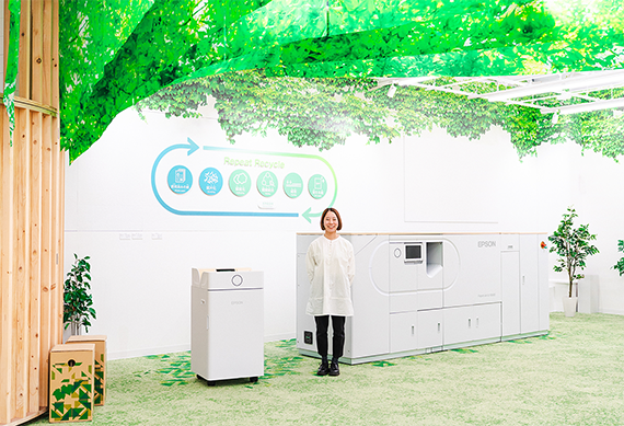 渡来:はい。PaperLabは印刷済みの紙から新しい紙を再生するエプソンを代表する環境製品です。私はこのPaperLabの新モデルのデザインを担当しました。世の中に大きなインパクトを与えた初代のPaperLabを、お客さまにもっと身近に感じていただき、オフィスでも使っていただける製品にするために「人と自然との共存を象徴する存在」を目指しました。環境を想う人々が自然と集まってくる、そんな世界観を「シンボルツリー」というコンセプトで表現しました。